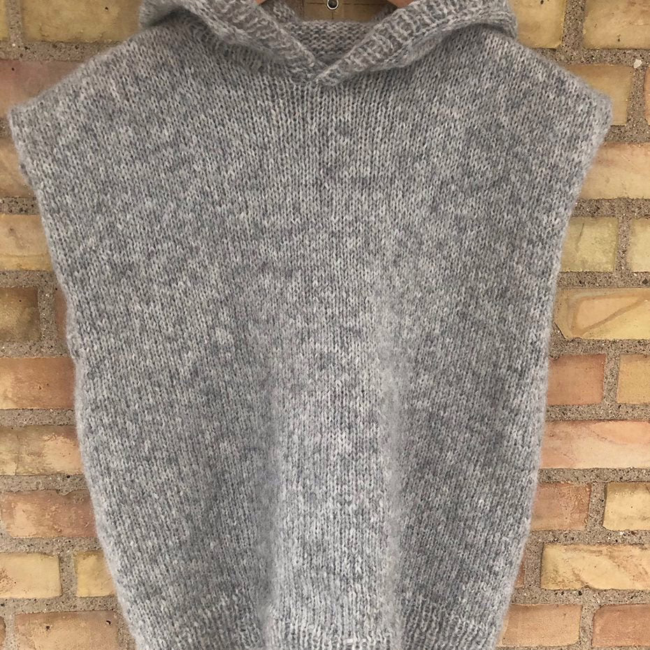 Cool og casual hoodie til herrer. Den ærmeløse hættebluse strikkes nedefra og op og rundt på rundpind. Fra ærmegabet deles arbejdet, og der strikkes frem og tilbage. Hætten formes foroven med indtagninger og vendinger.