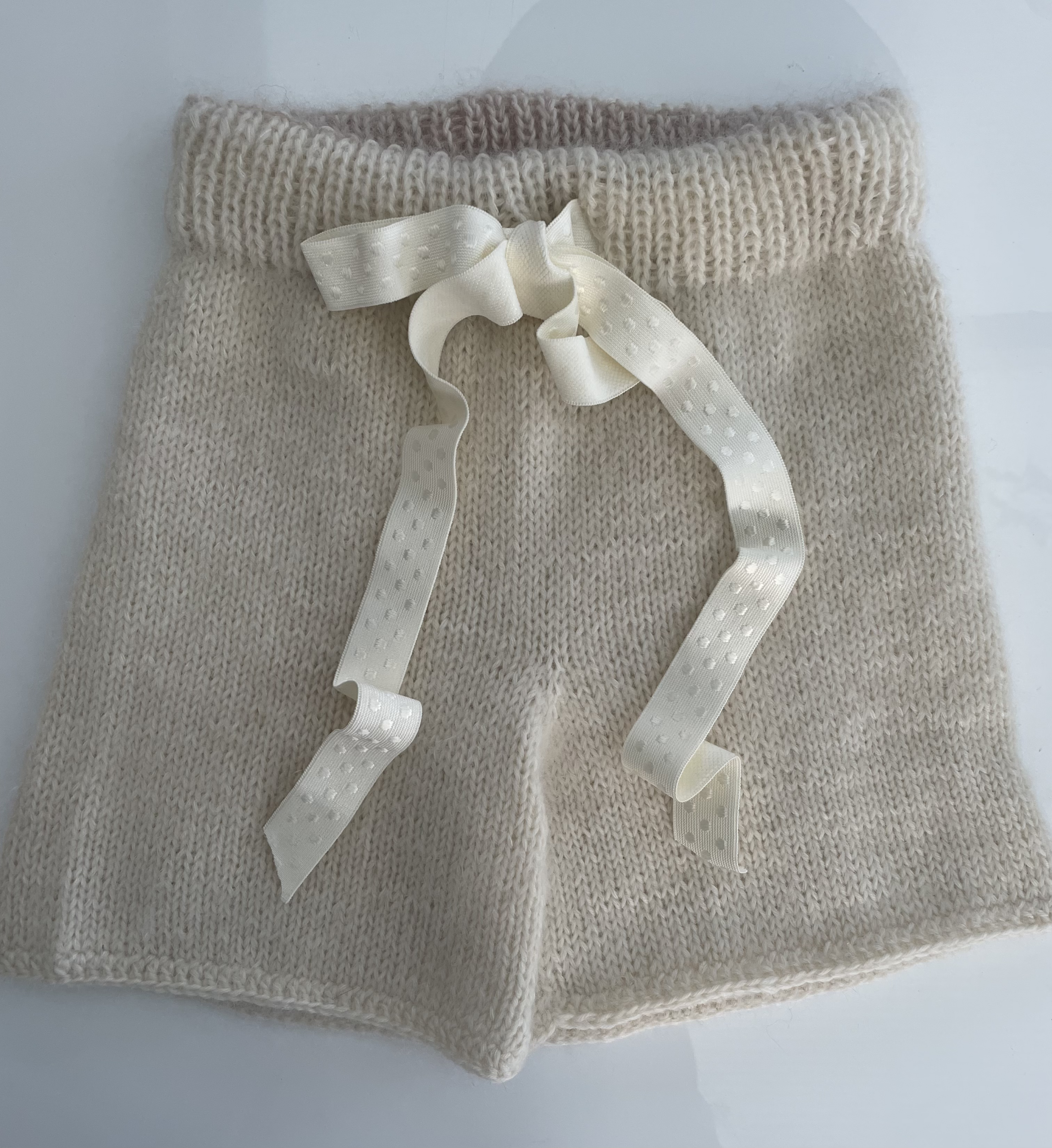 Garn: 1 tråd merino i Önling No 4 (50 g = 200 m) og 2 tråde mohair i Önling No 10 (25 g = 210 m). Der strikkes med 3 tråde samtidig. Vi har brugt 6 forskellige farver og kombineret dem. Du kan sagtens bruge flere eller færre, og det gør shortsene til et super godt restegarnprojekt. Vælg dine helt egne yndlingsfarver, og sæt dem sammen, som du vil. Du skal bare ramme nogenlunde samme tykkelse i garntråd, men så kan du også matche med en masse andre slags garner.